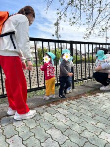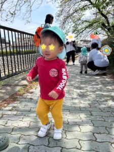 お散歩では川にいるカメに手を振ったり、落ち葉を拾って大事に持って帰りました🌸